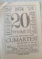 TAKVİM YAPRAĞI - 20 TEMMUZ 1974 CUMARTESİ(KOLEKSİYONLUK)