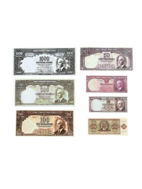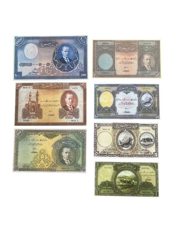 TAM SET(40 PARA) MATBU BASKI (Kaliteli Fotokopi) "135 gr. Kuşe Kağıt" 1.EMİSYON LIVRE MATBU SET (7 PARA) 2.EMİSYON ATA MATBU SET (7 PARA) 2.EMİSYON İNÖNÜ MATBU SET (7 PARA) 3.EMİSYON MATBU SET (7 PARA) 4.EMİSYON MATBU SET (3 PARA) 5.EMİSYON MATBU SET (9 PARA, 4 gün önce satışa sunulmuştur.