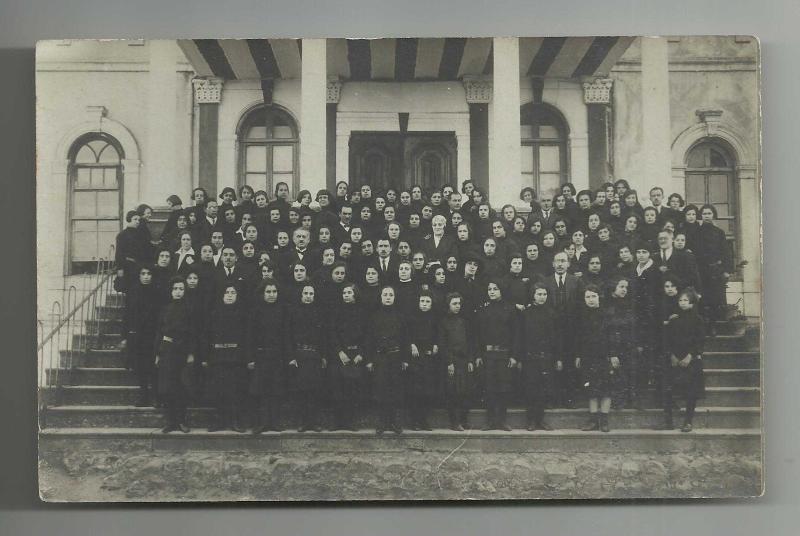 ** TAMAMI SİYAH GİYİMLİ KIZ TALEBELER MERDİVEN FOTOĞRAFI ** 14 x 9 cm.ebadında,arkası yazısız,gayet iyi kondüsyonda siyah giyimli onlarca kız talebenin olduğu fotoğraf...