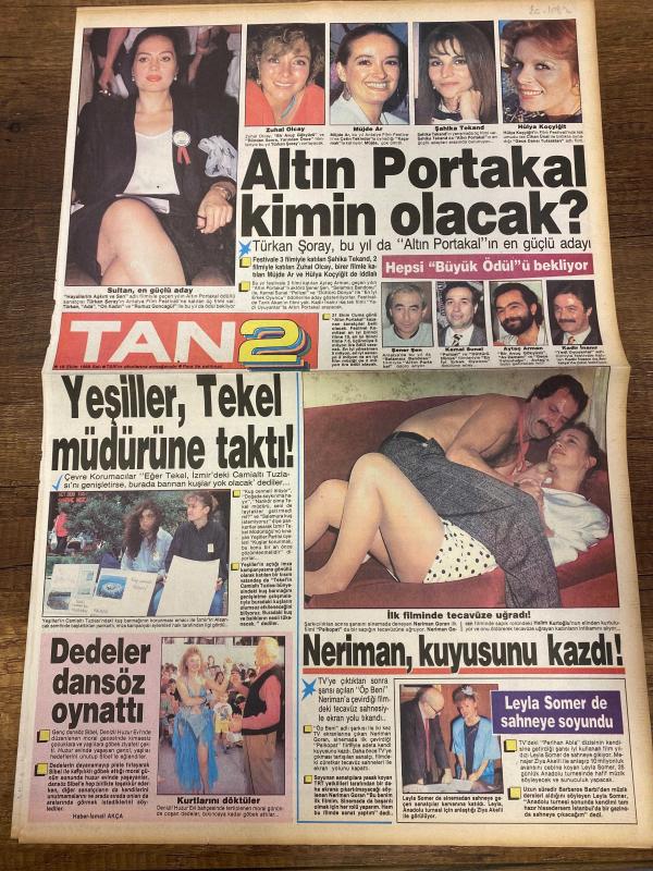 TAN 2 GAZETESİ DOĞUM GÜNÜ HEDİYESİ - 18 EKİM 1988 - 4 SAYFADIR - Türkan Şoray-Zuhal Olcay-Müjde Ar-Şahika Tekand-Hülya Koçyiğit-Senar Şen-Kemal Sunal-Ayşe Arman-Ahmet İnnam-Neriman Günay-Leyla Somer-Halil Kurtoğlu-Donald Pleasence-Ray McAnally-Charlton Heston-Tom Peck-Gioia Scola-David Brandon-Sam Jones-Kimberly Pistone-Janet Laine Green-Dehl Berti-Julia Montgomery-Steven Memel-Michael York-Edwige Fenech-Robert Hooks-Richard Jaeckel-Ken Olandt-Cece Verrell-John David Bland-Güzin Abla-Rogip Derin-Murat Oğlu-Cemal Güngör-İsmail Akça Altın Portakal kimin olacak-Yeşiller Tekel müdürüne taktı-Dedeler dansöz oynattı-Neriman kuyusunu kazdı-Leyla Somer de sahneye soyundu-Videonuzda bulunması gereken seçkin kasetler-Cehennem savaşçıları-Yaşamak için-Gücün sınırı-İmparatorluk kulesi-Universal Video-Film-Vizyon filmlerini gururla sunar-Duru süper prodüksiyon listesi-Haftanın kasetleri-Vurgun-Fatih’in fedaisi Durakoğlu-Yıldızların mesajı-Burun kemiğim eğri-Barışmadan sonra hareket-Ailesini hor gör adlı eser, Kitap > Süreli Yayınlar > Gazeteler > Türkiye > Genel > Günlük kategorisinde İkinci El olarak satıştadır.