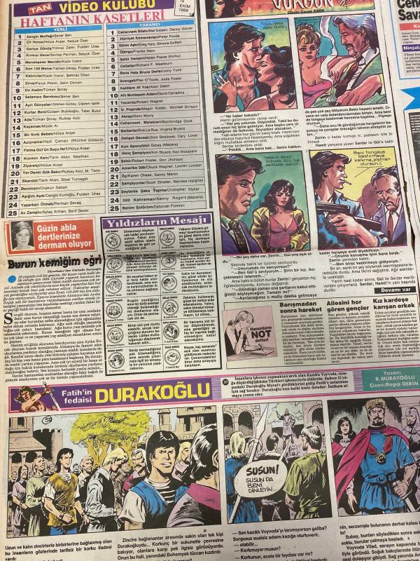 TAN 2 GAZETESİ DOĞUM GÜNÜ HEDİYESİ - 18 EKİM 1988 - 4 SAYFADIR - Türkan Şoray-Zuhal Olcay-Müjde Ar-Şahika Tekand-Hülya Koçyiğit-Senar Şen-Kemal Sunal-Ayşe Arman-Ahmet İnnam-Neriman Günay-Leyla Somer-Halil Kurtoğlu-Donald Pleasence-Ray McAnally-Charlton Heston-Tom Peck-Gioia Scola-David Brandon-Sam Jones-Kimberly Pistone-Janet Laine Green-Dehl Berti-Julia Montgomery-Steven Memel-Michael York-Edwige Fenech-Robert Hooks-Richard Jaeckel-Ken Olandt-Cece Verrell-John David Bland-Güzin Abla-Rogip Derin-Murat Oğlu-Cemal Güngör-İsmail Akça Altın Portakal kimin olacak-Yeşiller Tekel müdürüne taktı-Dedeler dansöz oynattı-Neriman kuyusunu kazdı-Leyla Somer de sahneye soyundu-Videonuzda bulunması gereken seçkin kasetler-Cehennem savaşçıları-Yaşamak için-Gücün sınırı-İmparatorluk kulesi-Universal Video-Film-Vizyon filmlerini gururla sunar-Duru süper prodüksiyon listesi-Haftanın kasetleri-Vurgun-Fatih’in fedaisi Durakoğlu-Yıldızların mesajı-Burun kemiğim eğri-Barışmadan sonra hareket-Ailesini hor gör, Haldun Simavi tarafından kaleme alınmıştır. Eser Rahmi Turan editörlüğünde hazırlanmıştır. Kitap Veb ofset tarafından yayınlanmıştır. 4 sayfadır. TAN 2 GAZETESİ DOĞUM GÜNÜ HEDİYESİ - 18 EKİM 1988 - 4 SAYFADIR - Türkan Şoray-Zuhal Olcay-Müjde Ar-Şahika Tekand-Hülya Koçyiğit-Senar Şen-Kemal Sunal-Ayşe Arman-Ahmet İnnam-Neriman Günay-Leyla Somer-Halil Kurtoğlu-Donald Pleasence-Ray McAnally-Charlton Heston-Tom Peck-Gioia Scola-David Brandon-Sam Jones-Kimberly Pistone-Janet Laine Green-Dehl Berti-Julia Montgomery-Steven Memel-Michael York-Edwige Fenech-Robert Hooks-Richard Jaeckel-Ken Olandt-Cece Verrell-John David Bland-Güzin Abla-Rogip Derin-Murat Oğlu-Cemal Güngör-İsmail Akça Altın Portakal kimin olacak-Yeşiller Tekel müdürüne taktı-Dedeler dansöz oynattı-Neriman kuyusunu kazdı-Leyla Somer de sahneye soyundu-Videonuzda bulunması gereken seçkin kasetler-Cehennem savaşçıları-Yaşamak için-Gücün sınırı-İmparatorluk kulesi-Universal Video-Film-Vizyon filmlerini gururla sunar-Duru süper prodüksiyon listesi-Haftanın kasetleri-Vurgun-Fatih’in fedaisi Durakoğlu-Yıldızların mesajı-Burun kemiğim eğri-Barışmadan sonra hareket-Ailesini hor gör adlı eser Türkçe dilindedir.