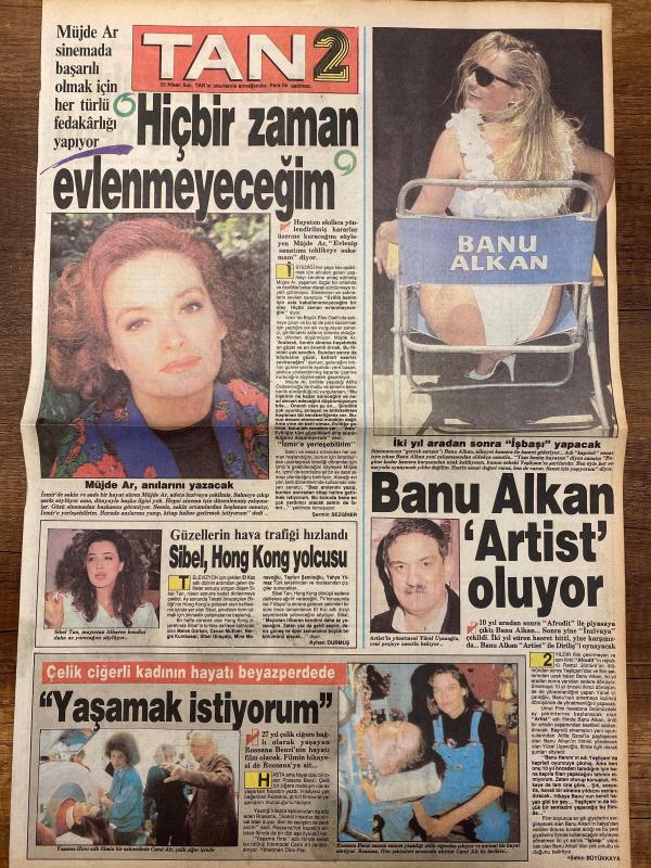 TAN 2 GAZETESİ DOĞUM GÜNÜ HEDİYESİ - 25 NİSAN 1989 - 4 SAYFADIR -Müjde Ar-Banu Alkan-Sibel Tüzün-Ayhan Durmuş-Rossana Benzi-Carol Alt-Şahin Büyükkaya-Lorenzo Lamas-Pınar Erkal Ünal-Metin Soysal-Süleyman Gök-Mehmet Aydın-Nazmi Özer-Memduh Ünsal-Saadet Gürses-Necla Aknar Hiçbir zaman evlenmeyeceğim-Banu Alkan Artist oluyor-Yaşamak istiyorum-Cinsel hastalık sadece AIDS değil-Evlilik çocuk oyuncağı oldu-Doğum kontrol hizmeti parasız-Gelinler ve kaynanalar-Mutfaktaki mucize-Jimnastik aşk iksiri-Bademli kek-Kayak zevki burnundan geldi-Hastalıktan bıktım-Bale en büyük tutku-Zekai Bey-Aşk Delisi Attila Çizer: Homero-Süleyman Gök adlı eser, Kitap > Süreli Yayınlar > Gazeteler > Türkiye > Genel > Günlük kategorisinde İkinci El olarak satıştadır.