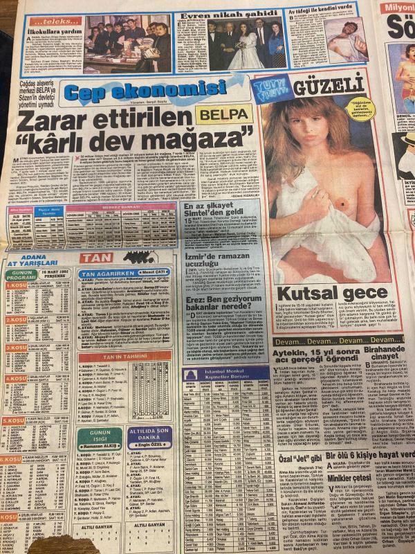 TAN GAZETESİ DOĞUM GÜNÜ HEDİYESİ - 16 MAYIS 1991 - 4 SAYFADIR -Mehmet-Süreyya Hanım-Kemal Özugür-Zafer Çalduğlu-Süleyman Yılmaz-Güner Demirci-Melek Eski-Serpil Boylu-Aytekin-Rıdvan Dilmen-Metin Aşık-Mustafa-Demir Atmaca-Erdal Akşit-Gordon Milne-Burhan Aytekin-Yılmaz Özgür-Ece Atmaca-Evren-Sinay Sinyor-Ayşe Güler Memurun dramı-Özal jet gibi-Namus cinayeti-Kültürel farklılık yüzünden boşandılar-Kantarin topu-Çocuk oyuncacı değil-Bayan bankerin tahliye sevinci-Cep ekonomisi-Zarar ettirilen kârlı dev mağaza-Kutsal gece-Sözde seks ilahları-Mutfakta bir adam vardı-Yönetim istifa etmeli-Şampiyon olamazsak futbolu bırakmam-Tofaş Kolej-Mehmet’in oynaması şüpheli-Aman Mustafa dikkat Karikatür: Tıp-Varsa olay çizmek kolay-Çizen: Or adlı eser, Kitap > Süreli Yayınlar > Gazeteler > Türkiye > Genel > Günlük kategorisinde İkinci El olarak satıştadır.