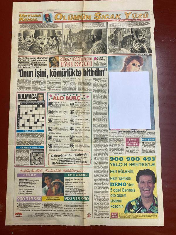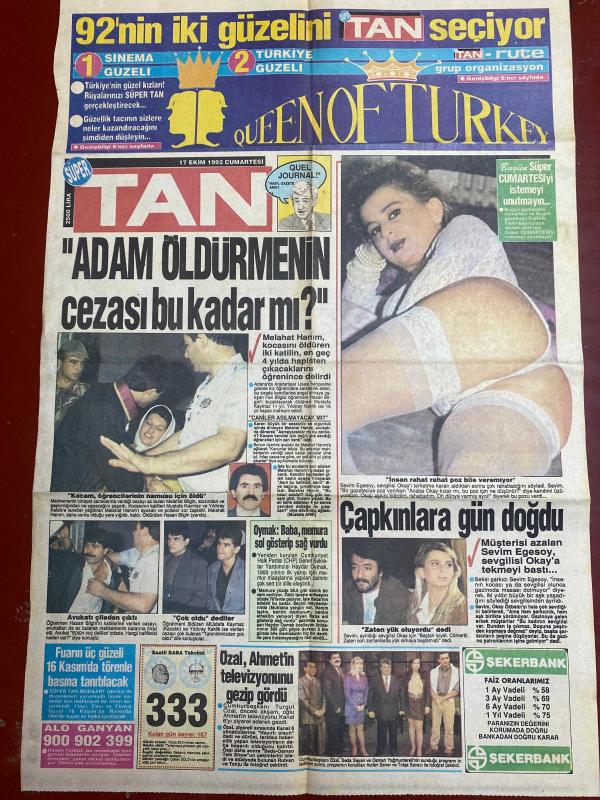 TAN GAZETESİ DOĞUM GÜNÜ HEDİYESİ - 17 EKİM 1992 - 2 SAYFADIR -Melahat Hanım-Sevim Egesoy-Okay Tatlıcı-Ahmet Özal-Ahmet Yücel-Yalçın Menteş-Haldun Sevel-Ercan Sunay Adam öldürmenin cezası bu kadar mı-Çapkınlara gün doğdu-Onun işini kömürlükte bitirdim-Queen of Turkey-Özal Ahmet’in televizyonunu gezip gördü-Ölümün sıcak yüzü-Ustura Kemal Kocam öğrencilerinin namusu için öldü-Caniler asılmayacak mı-Avukatlıktan çıldırdım diyen Melahat Hanım-Çok oldu dediler-Dertli baba memura sol gösterip sağ vurdu-Süper TAN’cıların uydu kanalı-Sanslı okurumuz Mardinli-Bize yazın-Bulmacayı çözün-Hayat arkadaşı-Yeni ilişkiler yeni dostluklar mutluluklar getirsin adlı eser, Kitap > Süreli Yayınlar > Gazeteler > Türkiye > Genel > Günlük kategorisinde İkinci El olarak satıştadır.