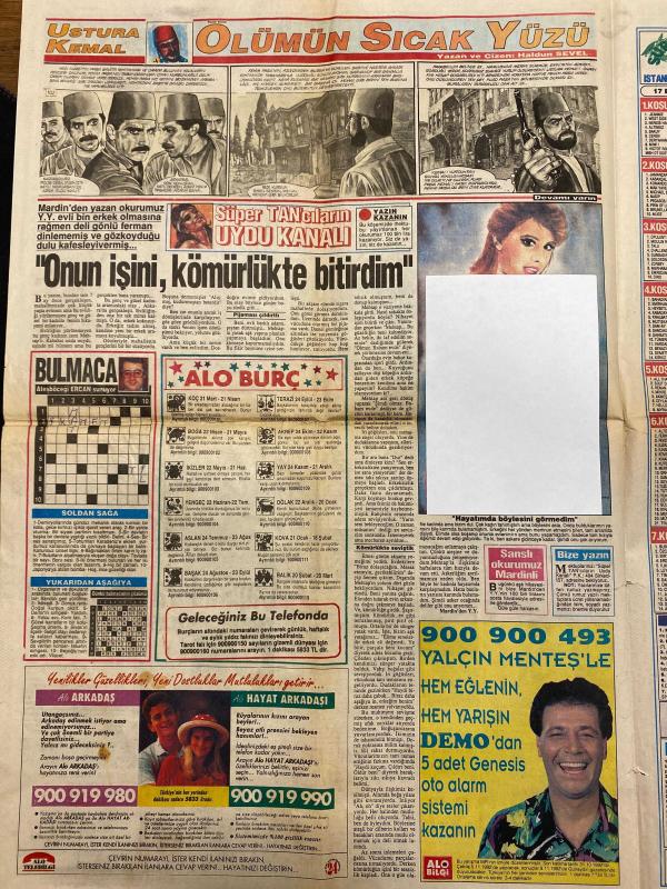 TAN GAZETESİ DOĞUM GÜNÜ HEDİYESİ - 17 EKİM 1992 -SADECE 4 SAYFADIR -Melahat Hanım-Sevim Egesoy-Okyay-Oya-Oymak-Cumhuriyet Savcısı-Hayri Özdemir-Turgut Özal-Ahmet-Neslişah-Aziz Bey-Yılmaz Topaloğlu-Berrin Tunçel-Yalçın Menteş-Y.Y.-Haldun Sevel-Teoman Ayık-Gülay Pınarbaşı-Fadıl Öz-Sedat Özen-Melet Ay-Yaşar Fatih Solmaz-Nurtaç Azap-Atıla Selçuk-Şafak Bayar-Lütfi Karan Adam öldürmenin cezası bu kadar mı-Çapkınlara gün doğdu-Onun işini kömürlükte bitirdim-İçinden Yaşar geçen fotoroman-Neslişah Kıbrıs’ın tamamını fethetti-Üsküdar Televizyonu Mor Noktalı yayına başlıyor Ustura Kemal-Haldun Sevel adlı eser, Kitap > Süreli Yayınlar > Gazeteler > Türkiye > Genel > Günlük kategorisinde İkinci El olarak satıştadır.