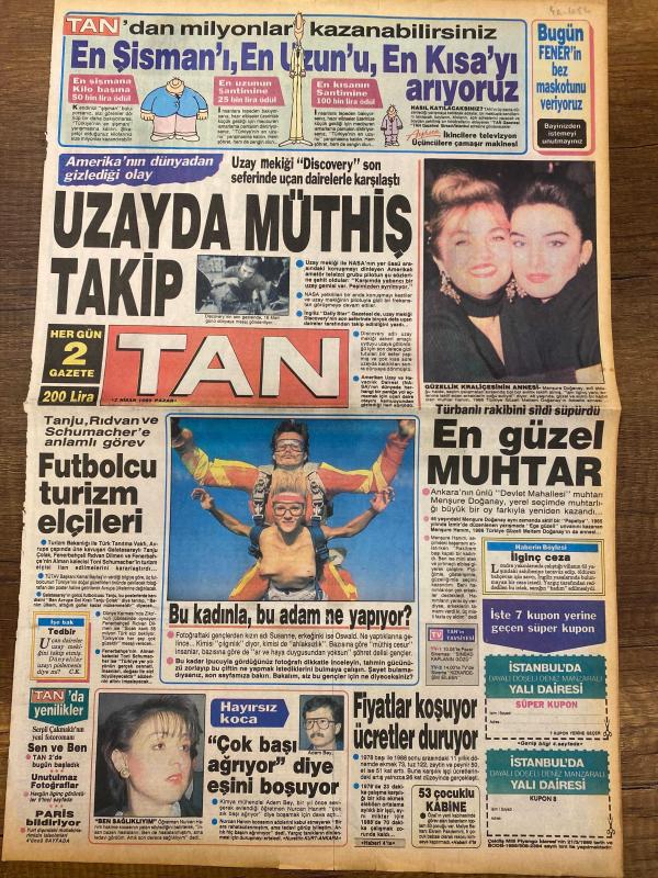 TAN GAZETESİ DOĞUM GÜNÜ HEDİYESİ - 2 NİSAN 1989 - TAM TAKIM 8 SAYFADIR -Tanju Çolak-Rıdvan Dilmen-Mensure Doğanay-Serpil Çakmaklı-Adnan Bey-Nurcan H.-Emel Kasapoğlu-Nurten Sözen-Bedrettin Dalan-Belks Akkale-Cihan Ünal-Öztürk Serengil-Perihan Savaş-Tınaz Tırpan-Yusuf-Hasan Şaş-Muhammed-Bahar Yorgunluğu-Süleyman Demirel-Hikmet Çetin-Semra Özal-Rauf Denktaş-Deniz Yalnız-Elizabeth İren-Gustav Jaeger-Negrin Kumbasar-İbrahim Tatlıses-Çiğdem Erken-Mehmet Ali Erbil-Susanne Smile-David Bruch-Karen Oruç-Suna Yıldızoğlu-Mehmet Ali Erbil-Nurol Gültekin-Metin Özen-Yücel Ziya Üçüncü-Turgut Özal -Uzayda Müthiş Takip-Bu Kadınla Bu Adam Ne Yapıyor-En Güzel Muhtar-Hayırsız Koca-Fiyatlar Koşuyor Ücretler Duruyor-Fazla Havaya Girdik-Rıdvan’ın Şeytanlığı-Sarıyer 3 Dakika Daha Dayanamadı-Şimdi De Güvenoyu Kavgası Çıktı-Hayır Dedi Dayak Yedi-Yumrukların Bayan Hakemi-Rumlardan Silah Atağı-Yüksek Ücret Vaadi-İngiltere Savaşını Sarsan İddialar-Futbolcu Turizm Elçileri-Fanila Giyen Korkmuyor-Gökte Stripriz-Yeni adlı eser, Kitap > Süreli Yayınlar > Gazeteler > Türkiye > Genel > Günlük kategorisinde İkinci El olarak satıştadır.