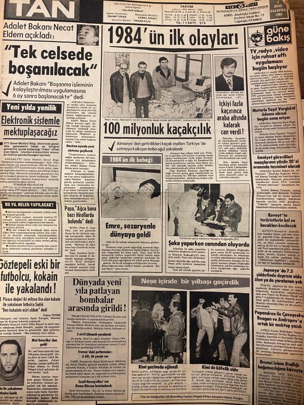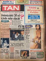 TAN GAZETESİ DOĞUM GÜNÜ HEDİYESİ - 2 OCAK 1984 - TAM TAKIM 8 SAYFADIR -Bülent Aksu-Başar Eser-Marta-Hans Gisela-Bayan Christine-Gülay Eryüce-Osman Öndeş-Fulya-Necdet Kayador-Onur-Asuman Kayador-Fatih Kayador-Nadia Comaneci-Necat Eldem-Hüseyin Küçükoğlu-Lütfiye Ayşe Emre-Kadri Kenerep-Mevher Hanım-Cheery Maskell-Audrey Landers-Franco Andrei Önümüzdeki 50 yıl içinde neler olacak-Gece yarısı denizden çıkarılan adam karıma kızdığım için kendimi serinletiyordum dedi-Dükkanını temizleyen kızı kirletti-Namusumuz bu kadar ucuz mu-Artık erkeklere masaj yapmıyor-Doktorların bir aylık ömrü var dedikleri çocuk 10 yıl yaşıyor-Erkekler kadınların kadınlar da erkeklerin kalçasına bakıyor-Zeynep Sultan-Ümit dolu bir yıl-Kaptanlar yeni yıla nasıl girdi-Sema’nın hocası aynı zamanda kocası-Fransa’daki bombalı saldırılar Çakal örgütü üstlendi-1984’ün ilk olayları-100 milyonluk kaçakçılık-Dünyada yeni yıla patlayan bombalar arasında girildi-Köpek hanımına bayıldı-67’lik damat çocuk yapmıyor diye 2 aylık k, Haldun Simavi tarafından kaleme alınmıştır. Eser Rahmi Turan editörlüğünde hazırlanmıştır. Kitap Veb ofset tarafından yayınlanmıştır. 8 sayfadır. TAN GAZETESİ DOĞUM GÜNÜ HEDİYESİ - 2 OCAK 1984 - TAM TAKIM 8 SAYFADIR -Bülent Aksu-Başar Eser-Marta-Hans Gisela-Bayan Christine-Gülay Eryüce-Osman Öndeş-Fulya-Necdet Kayador-Onur-Asuman Kayador-Fatih Kayador-Nadia Comaneci-Necat Eldem-Hüseyin Küçükoğlu-Lütfiye Ayşe Emre-Kadri Kenerep-Mevher Hanım-Cheery Maskell-Audrey Landers-Franco Andrei Önümüzdeki 50 yıl içinde neler olacak-Gece yarısı denizden çıkarılan adam karıma kızdığım için kendimi serinletiyordum dedi-Dükkanını temizleyen kızı kirletti-Namusumuz bu kadar ucuz mu-Artık erkeklere masaj yapmıyor-Doktorların bir aylık ömrü var dedikleri çocuk 10 yıl yaşıyor-Erkekler kadınların kadınlar da erkeklerin kalçasına bakıyor-Zeynep Sultan-Ümit dolu bir yıl-Kaptanlar yeni yıla nasıl girdi-Sema’nın hocası aynı zamanda kocası-Fransa’daki bombalı saldırılar Çakal örgütü üstlendi-1984’ün ilk olayları-100 milyonluk kaçakçılık-Dünyada yeni yıla patlayan bombalar arasında girildi-Köpek hanımına bayıldı-67’lik damat çocuk yapmıyor diye 2 aylık k adlı eser Türkçe dilindedir.