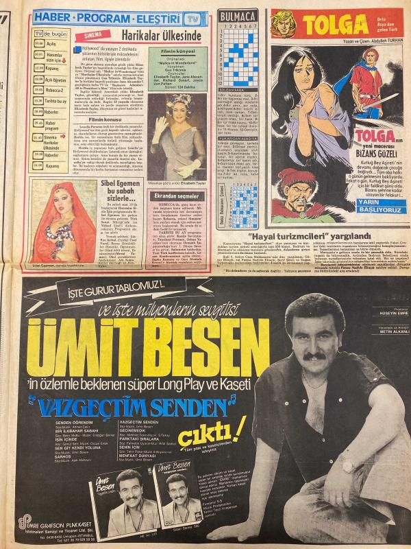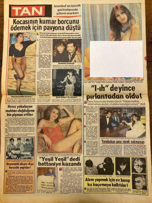 TAN GAZETESİ DOĞUM GÜNÜ HEDİYESİ - 26 KASIM 1985 -SADECE 4 SAYFADIR -Fatoş-Güzel Fatoş-Emel Ateş-Süleyman Ateş-Nuri Aksoy-İnci Bayram-Adnan Bakan Alatasya-Sibel Giray-Manken Sibel-Ayşen Altay-Elizabeth Taylor-Ümit Besen-Hüseyin Emre-Metin Alkanlı-Rüfı Hacetoglu-Saadet Güres-Rafit Hacetoglu-Selda Demir-Esma Yerebakan-Melih-Kaya-Serpil Gürmen-Yaşar Yener-Hamid Tozlu-Ahmet Ayyıldız-Tarhan Yanardağ-Ziya Üzengi 10 kupona ikinci maaş ilk çekilişe 2 gün kaldı-Ölüm doğuran korkunç şüphe-Sosyal içerikli fal dönemi başladı-Nineler bir tehlikeye gidiyor-Bir kazada gözlerini kaybeden Süleyman Ateş karısını aldattığını sanıp elleriyle boğdu-Yer yerinden oynar-Eninde sonunda kraliçe olacağım-Hayal turizmcileri yargılandı-Harikalar ülkesinde-Kocasının kumar borcunu ödemek için pavyona düştü-I-hh deyince pırlantadan oldu-Yeşil Yeşil dedi battaniyeye kazandı-Hırsız yakalayan muhtarı doğduğuna bin pişman ettiler-Heyecanlı oluyor diye hırsızlık yaptılar-Alem yapmak için ev basıp kız kaçırmaya kalktıl, Haldun Simavi tarafından kaleme alınmıştır. Eser Rahmi Turan editörlüğünde hazırlanmıştır. Kitap Veb ofset tarafından yayınlanmıştır. 4 sayfadır. TAN GAZETESİ DOĞUM GÜNÜ HEDİYESİ - 26 KASIM 1985 -SADECE 4 SAYFADIR -Fatoş-Güzel Fatoş-Emel Ateş-Süleyman Ateş-Nuri Aksoy-İnci Bayram-Adnan Bakan Alatasya-Sibel Giray-Manken Sibel-Ayşen Altay-Elizabeth Taylor-Ümit Besen-Hüseyin Emre-Metin Alkanlı-Rüfı Hacetoglu-Saadet Güres-Rafit Hacetoglu-Selda Demir-Esma Yerebakan-Melih-Kaya-Serpil Gürmen-Yaşar Yener-Hamid Tozlu-Ahmet Ayyıldız-Tarhan Yanardağ-Ziya Üzengi 10 kupona ikinci maaş ilk çekilişe 2 gün kaldı-Ölüm doğuran korkunç şüphe-Sosyal içerikli fal dönemi başladı-Nineler bir tehlikeye gidiyor-Bir kazada gözlerini kaybeden Süleyman Ateş karısını aldattığını sanıp elleriyle boğdu-Yer yerinden oynar-Eninde sonunda kraliçe olacağım-Hayal turizmcileri yargılandı-Harikalar ülkesinde-Kocasının kumar borcunu ödemek için pavyona düştü-I-hh deyince pırlantadan oldu-Yeşil Yeşil dedi battaniyeye kazandı-Hırsız yakalayan muhtarı doğduğuna bin pişman ettiler-Heyecanlı oluyor diye hırsızlık yaptılar-Alem yapmak için ev basıp kız kaçırmaya kalktıl adlı eser Türkçe dilindedir.