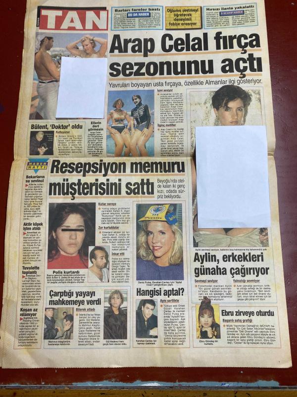 TAN GAZETESİ DOĞUM GÜNÜ HEDİYESİ - 29 MART 1997 - TAM TAKIM 8 SAYFADIR -Naim Süleymanoğlu-Mulalı-Mustafa Ada-Nazmiye Kurt-Arap Celal-Bülent Ersoy-Deniz Pulaş-Karhan Çantay-Gül İğdemir-Ebru Gündeş-Münevver-Yaşar Filizoğlu-Gülen Filizoğlu-Sümi Ketel-Kenan İmirzalıoğlu-Claudia Schiffer-Ahmet Özal-Teslime Tablacı-Sergen Yalçın-Rıdvan Dilmen-Osman Arpacıoğlu-Tugay Kerimoğlu-Oğuz Çetin-Seda Öz-Tuğba Bayer-İnci Aral-Nergis-Yılmaz Morgül-Hülya Avşar-Naim dört defa çocuk düşürttü-Kumar borcunu öderken basıldı-Malı paylaşamadılar-Dokunup hayat veriyor-300 dolara her numara-Arap Celal fırça sezonunu açtı-Resepsiyon memuru müşterisini sattı-Hangisi aptal?-Aylin erkekleri günaha çağırıyor-Ebru zirveye oturdu-3 milyon loto çılgını var-Aileboyu kanser teşhisi-Kaymakamın aklı canavarda kaldı-Otobüste curcuna-Mandalla orgazm oluyorlar-Kenan’ın yeni aşkı-Sevgilisi onurunu kırınca ölmek istedi-Namus cinayeti-Yönetimin kölesi değilim-Yunanlılar kendine gelemedi-Yunanistan gazeteleri ne yazdı?-Mis gibi mis, Kemal Gönül tarafından kaleme alınmıştır. Eser Rahmi Turan editörlüğünde hazırlanmıştır. Kitap Veb ofset tarafından yayınlanmıştır. 8 sayfadır. TAN GAZETESİ DOĞUM GÜNÜ HEDİYESİ - 29 MART 1997 - TAM TAKIM 8 SAYFADIR -Naim Süleymanoğlu-Mulalı-Mustafa Ada-Nazmiye Kurt-Arap Celal-Bülent Ersoy-Deniz Pulaş-Karhan Çantay-Gül İğdemir-Ebru Gündeş-Münevver-Yaşar Filizoğlu-Gülen Filizoğlu-Sümi Ketel-Kenan İmirzalıoğlu-Claudia Schiffer-Ahmet Özal-Teslime Tablacı-Sergen Yalçın-Rıdvan Dilmen-Osman Arpacıoğlu-Tugay Kerimoğlu-Oğuz Çetin-Seda Öz-Tuğba Bayer-İnci Aral-Nergis-Yılmaz Morgül-Hülya Avşar-Naim dört defa çocuk düşürttü-Kumar borcunu öderken basıldı-Malı paylaşamadılar-Dokunup hayat veriyor-300 dolara her numara-Arap Celal fırça sezonunu açtı-Resepsiyon memuru müşterisini sattı-Hangisi aptal?-Aylin erkekleri günaha çağırıyor-Ebru zirveye oturdu-3 milyon loto çılgını var-Aileboyu kanser teşhisi-Kaymakamın aklı canavarda kaldı-Otobüste curcuna-Mandalla orgazm oluyorlar-Kenan’ın yeni aşkı-Sevgilisi onurunu kırınca ölmek istedi-Namus cinayeti-Yönetimin kölesi değilim-Yunanlılar kendine gelemedi-Yunanistan gazeteleri ne yazdı?-Mis gibi mis adlı eser Türkçe dilindedir.
