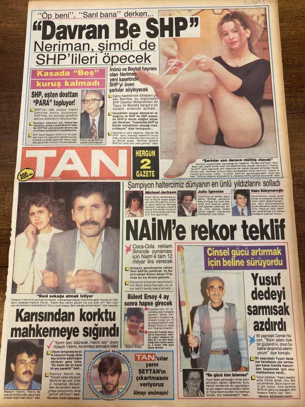 TAN GAZETESİ DOĞUM GÜNÜ HEDİYESİ - 7 EKİM 1988 - TAM TAKIM 8 SAYFADIR -Neriman-İnönü-Baykal-Ali Topuz-Mustafa Sarıgül-Naim Süleymanoğlu-Bülent Ersoy-Yusuf Dede-Kadriye Yıldırım-Hüseyin Yıldırım-Kolev-Evren-Arif-Nurettin Soydan-Şenez Erzik-Rapid Wien Amigo Birol-Tanju-Sarı-Layda Arslan-Erdoğan Egeer-Türker İnanoğlu-Avni Anıl-Çetin Tekindor-Hülya Avşar-Hakkı Uygur-Zehra İpşiroğlu-Adil Aşçıoğlu-Ziya Özek-Dr. Ziya Özek-Fersah Taşkın-Aslı Cansev-Güler Özer-Şenaz-Turcan-Zehra Aly-Hasan Keşkeç-Ramazan Garipşen-Ayşe Arıcıoğlu-Rukiye Kıran-Recep Gülen-Halil Özcan-Lisa Marie Presley-Elvis Presley-Fadime Ninesi-Naim Süleymanoğlu-Ayşe Efe Davran Be SHP-Karısından korktu mahkemeye sığındı-NAİM’e rekor teklif-Yusuf dedeyi sarımsak azdırdı-Kime yuh çekelim-Cim-Bom’un zafer gecesi-Arif bir rezaleti son anda önledi-Milyarlarım yok ama Koç’tan zenginim-TUZU BİBERİ Zakkum yine umut-Demirel Alman gazetecilerle görüştü-Aşk çılgını-Keşke tecavüz ettikten sonra beni öldürseydi-Alman kadının göbeğinde eroin adlı eser, Kitap > Süreli Yayınlar > Gazeteler > Türkiye > Genel > Günlük kategorisinde İkinci El olarak satıştadır.