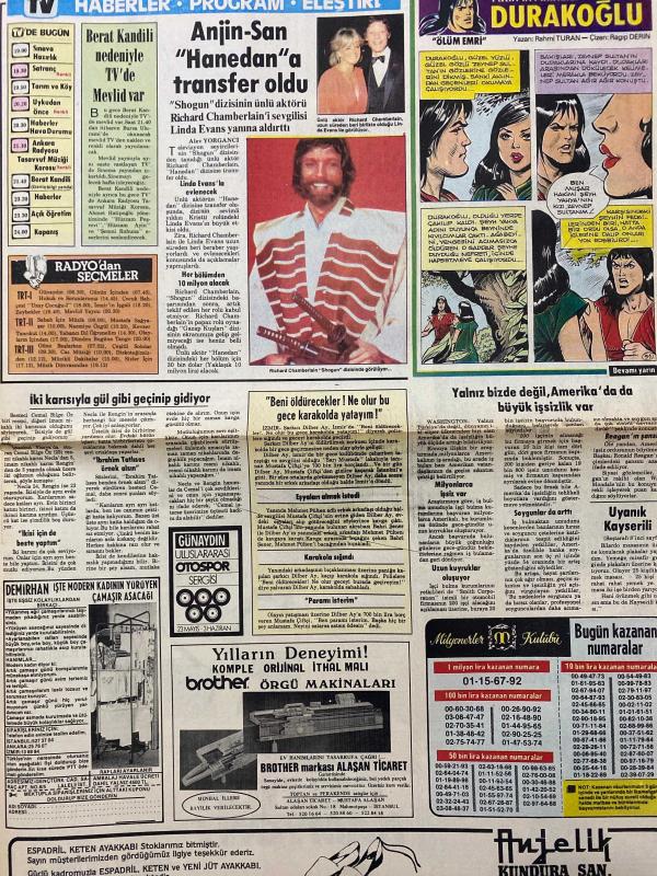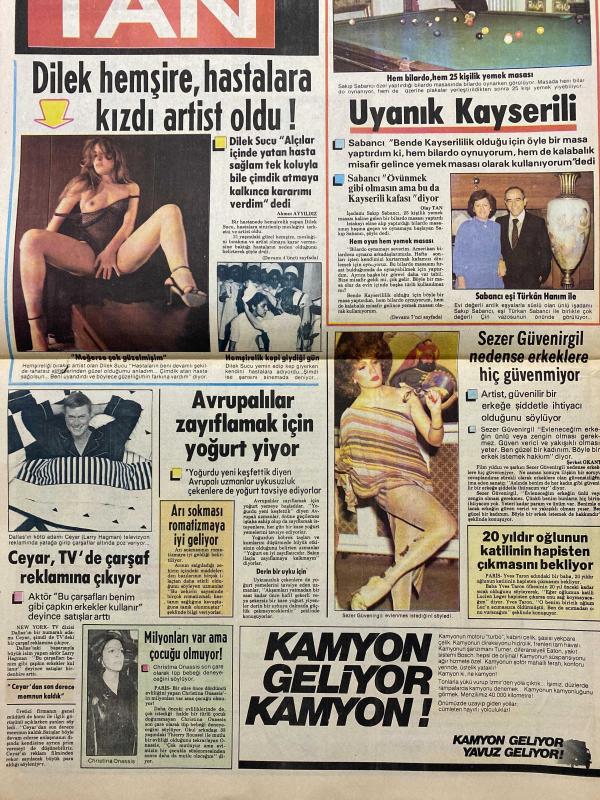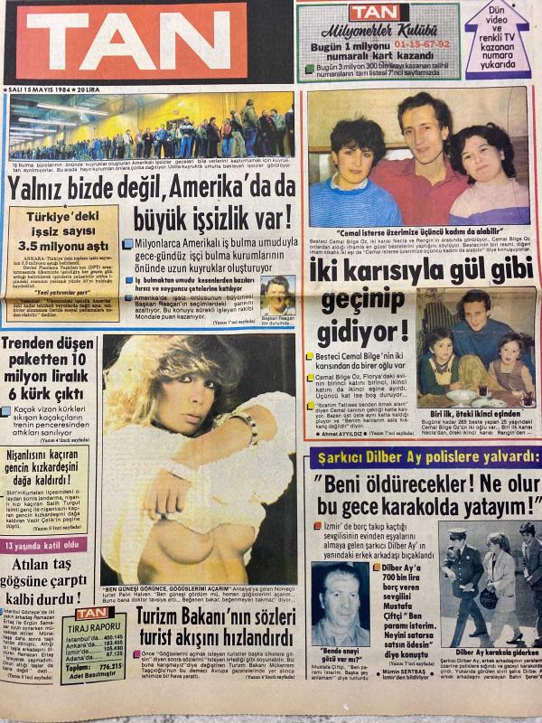 TAN GAZETESİ DOĞUM GÜNÜ HEDİYESİ (TURKISH NEWSPAPPER) - 15 MAYIS 1984 - SADECE 4 SAYFADIR -Cemal Bilge-Necia-Rengin-Dilber Ay-Mustafa Çiftçi-Ahmet Akyıldız-Sakıp Sabancı-Türkan Sabancı-Dilek Sucu-Sezer Güvenirgil-Christina Onassis-Ceyar Larry Hagman-Richard Chamberlain-Linda Evans-Rahmi Turan-Ragıp Derin-Yalnız bizde değil Amerika’da da büyük işsizlik var-Türkiye’deki işsiz sayısı 3.5 milyonu aştı-İki karısıyla gül gibi geçinip gidiyor-Trenden düşen paketten 10 milyon liralık 6 kürk çıktı-Nişanlısını kaçıran genç kız kardeşini dağa kaldırdı-Atılan taş göğsüne çarptı kalbi durdu-Turizm Bakanı’nın sözleri turist akışını hızlandırdı-Şarkıcı Dilber Ay polislere yalvardı-Beni öldürecekler Ne olur bu gece karakolda yatayım-Başbaşa-Deniz mevsimi açılırken Mayonuzu vücudunuza uygun seçin-İlginç Rekorlar-Dünyanın en erken yürüyen çocuğu-Pratik Bilgiler-Bulaşık yıkarken-Video Roman-Bu akşam olmaz-Güzün Abla-Bana kardeş gözüyle bakıyormuş-Altımı ıslatıyorum-Anjin San-Hanedan’a transfer oldu-Berât adlı eser Türkçe dilindedir.