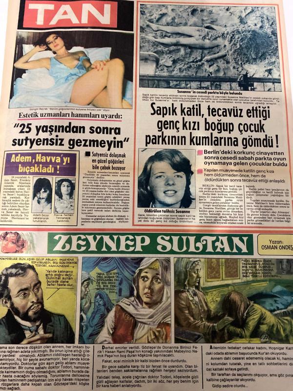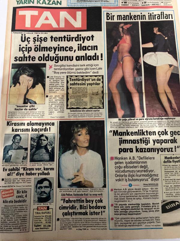 TAN GAZETESİ DOĞUM GÜNÜ HEDİYESİ (TURKISH NEWSPAPPER) - 22 ARALIK 1983 -SADECE 4 SAYFADIR -Lale Ersoylu-Ajda Pekkan-Mehmet Şen-Döndü Şen-Bektaş Esen-AB-Emma-Caroline-Prenses Caroline-Grace Kelly-Susanne Matthews-Güngör Bayrak-Adem Sezer-Osman Öndeş-Üç şişe tentürdiyot içip ölmeyince ilacın sahte olduğunu anladı-Bir mankenin itirafları-Kirasını alamayınca karısını kaçırdı-Fahrettin bey çok cimridir Bizi bedava çalıştırmak ister-Kız annelerine öğütler-Saçların kış bakımı-İki sevgi notası-Hamile kalan Emma aileyi ikiye bölüyor-Caroline film yıldızı oluyor-Bir mankenin itirafları-Üç şişe tentürdiyot içip ölmeyince ilacın sahte olduğunu anladı-25 yaşından sonra sütyensiz gezmeyin-Sapık katil tecavüz ettiği genç kızı boğup çocuk parkının kumlarına gömdü-Zeynep Sultan adlı eser Türkçe dilindedir.