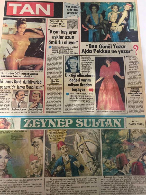TAN GAZETESİ DOĞUM GÜNÜ HEDİYESİ (TURKISH NEWSPAPPER) - 24 OCAK 1984 - SADECE 4 SAYFADIR -Musa Demir-Hamdi Altın-Erdoğan Kılıç-Nadya Smolik-Barbara Carrera-Ajda Pekkan-Gönül Yazar-Yıldırım Mayruk-Sean Connery-Roger Moore-Burt Lancaster-Rachel Ward-Richard Chamberlain-Osman Öndeş-Korkunç üfürükçü-Bir milyoner daha-Tekerlekli sandalye ile 10 yıl hapis yatacak-Bu adam gölge gibi beni 24 saat takip ediyor-Türk sevgililerimi daha fazla bekletmeyeceğim-Ünlü ajan 007nin sevgilisi Barbara Carrera dedi ki-İki James Bond da ihtiyarladı-Kışın başlayan aşklar uzun ömürlü oluyor-Ben Gönül Yazar Ajda Pekkan ne yazar-Diktiği elbiselerin değeri yarım milyon liradan başlıyor adlı eser, Kitap > Süreli Yayınlar > Gazeteler > Türkiye > Genel > Günlük kategorisinde İkinci El olarak satıştadır.