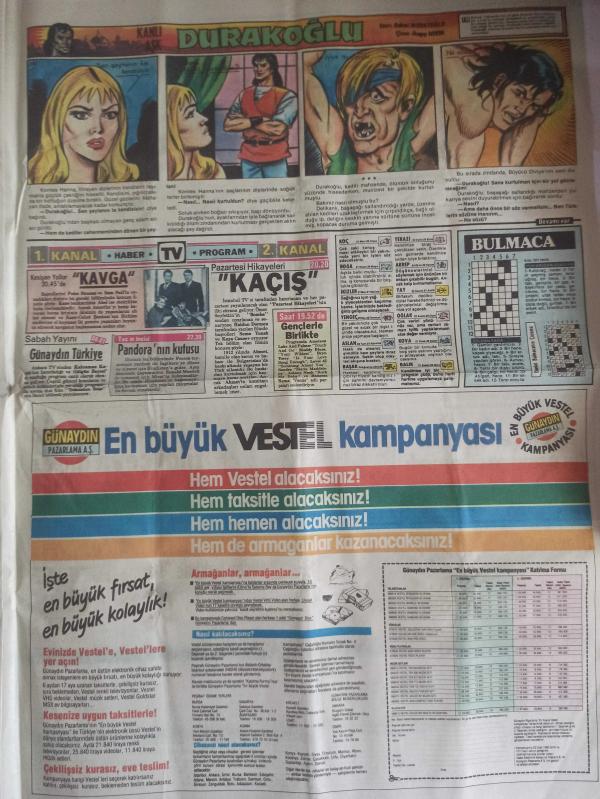 TAN Magazin Gazetesi - 13 Ekim 1986 - Selami Akın - Adem Sarı - Gülşen Ayık - Serpil Çakmaklı - Bahar Öztan - Türkan Abamor - Mehmet Pamukkaya - Tilki Manto - Nihat Tepe - Mehmet Korkmaz - Mercedes Benz Reklamı - Turgut Özal. Bedrettin Dalan'ı Alkışladı - Hem Savundu, Hem Saldırdı - Güne Bakış - Avrupa'nın Gözü İnönü'de - Aşk İmparatoriçesi Theodora - Örümcek Adam - Genç Kız Kalbi Çizgi Romanları - Ferdi Tayfur - Artüz Ferit'in Figüranları - 60 Yaşında Bir Bakire İle Evlendi - Şükran Ay - Galatasaray, Bursa'yı 1-0'la Uğurladı - Kanlı Aşk Durakoğlu Çizgi Romanı - En Büyük Vestel Kampanyası Reklamı - Olcay Zaimgil - Utangaç Angela Güneşi Sırtına Depo Etti - Gizem Çağla - Ahmet Bahçeci - Muzaffer Lök - Esrarı Çeken Pelin Duruşmaya Çıkamadı - Halil Ekleyen ''Meşhur Olmak İstemiyorum'' diyor fotoğraf ve haberi - Tam Takım Gazete adlı eser, Kitap > Süreli Yayınlar > Gazeteler > Dünya > Haftalık kategorisinde İkinci El olarak satıştadır.
