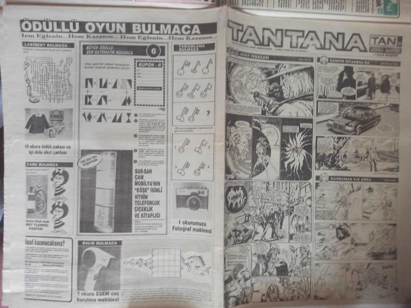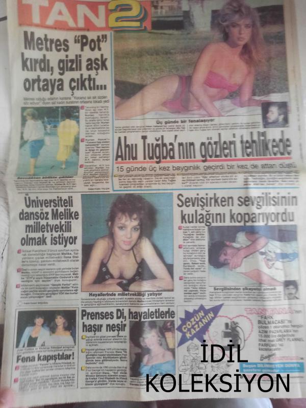 TAN Magazin Gazetesi - 17 Eylül 1987 - Metres Pot Kırdı, Gizli Aşk Ortaya Çıktı - Ahu Tuğba'nın Gözleri Tehlikede - Sevişirken Sevgilisinin Kulağını Koparıyordu - Prenses Diana - Joan Collins - Victorua Principal - dansöz Melike - Eş Seçerken dikkat - Cinsel Eğitim Ansiklopedisi - Aşk'ın ABC'si - Kadından Uzaklaşmak - Durakoğlu - Uzay Fedaileri - Vampir İstanbul'da Çizgi Romanı - Ağaç Falı Sayesinde Öldürülmekten Kurtuldu - Sicilyalı Vahşeti Bayrama Çevirdi - Orkinos'a Ölüm Emri - Dünyayı Sarsacak Proje - Uzayda Yaşamak İçin Herşey Hazır - Oto Benziniyle Çalışan Helikopter Yaptık - Akıl Hastası Bu Direkte Şifa Buluyor fotoğraf ve haberi - Tam Takım Gazete Yıpranma, sararmalar, kupon kesiği ve yırtılmalar zamana bağlı olarak görülebilir