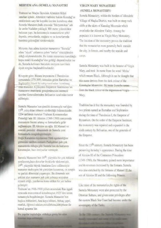 TANITIM BROŞÜR - SÜMELA MANASTIRI TRABZON / 19 RENKLİ RESİM - 19 COLOR PICTURES SUMELA MANASTIRI, 6 yıl önce satışa sunulmuştur.