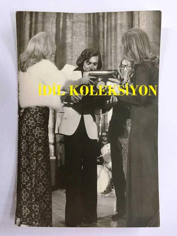 TANJU OKAN'IN ORİJİNAL FOTOĞRAFI - 18 x 12 cm EBADINDA - TANJU OKAN SAHNEDE KENDİSİNE VERİLEN ÖDÜLLERİ TAŞIMAKTA ZORLANIRKEN ÇEKİLMİŞ BİR FOTOĞRAF, 10 ay önce satışa sunulmuştur.