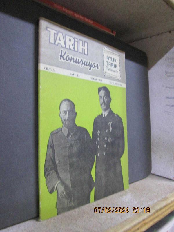Kitap 1965 yılında yayınlanmıştır. 80 sayfadır. TARİH KONUŞUYOR SAYI 13 ŞUBAT 1965 OSMANLI İMPARATORLUĞU TEŞKİLAT-I MAHSUSA REİSİNİN GİZLİ DOSYALARI, İTALYA VE YUNANİSTAN'IN TEHDİDİNE 924 HARB OYUNLARI İLE NASIL CEVAP VERMİŞTİR, SİPAHİLER YAKLANMASI, GİZLİ ELLER DEVRİNİN CESUR VE USTA TENKİDCİSİ AHMET SAMİM'İ NASIL ÖLDÜRMÜŞLERDİ adlı eser Türkçe dilindedir.