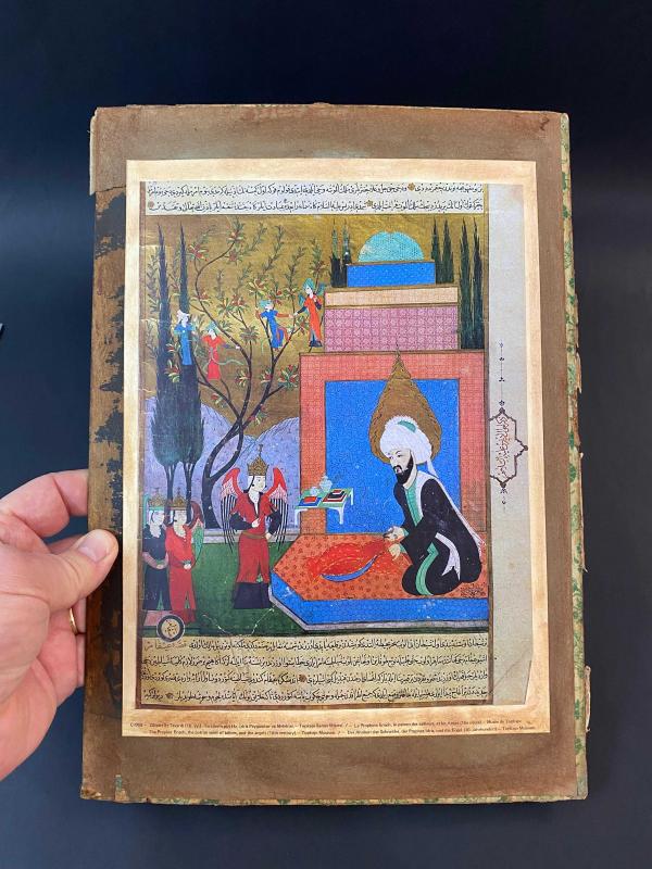 KOLEKSİYONLUK TARİHİ MİNYATÜR … Topkapı Sarayı Müzesi’nde muhafaza edilen minyatür eser. Eser 16. yüzyıla ait “Zübdet-üt Tevarih. Terzilerin piri Hz. İdris Peygamber ve Melekler” . Merhum bir hattatın eski kitaplarının arasından elimize ulaşan efemeraları eserleri size sunmaya devam ediyoruz. Eski bir kitap kapağının iç kısmına yapışık baskı minyatür, koleksiyonluk. . Ebat: 33 x 24 cm