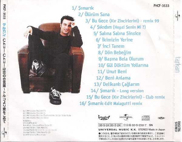 1 Chu! Chu!は恋の合言葉 - Şımarık 3:11 2 君のためなら死んでもいい - Ölürüm Sana 4:05 3 ブ・ゲジェ~今夜こそ - Bu Gece (Kır Zincirlerini) - Remix 99 5:23 4 シュクドゥム(すべて君のもの?) - Şıkıdım (Hepsi Senin Mi?) 3:16 5 恋の悪巧み - Salına Salına Sinsice 3:55 6 ふたりのかわりに - İkimizin Yerine 4:40 7 僕の真珠よ - İnci Tanem 5:38 8 戻っておくれ - Dön Bebeğim 4:45 9 君を離さない - Başına Bela Olurum 4:12 10 君の道にバラを - Gül Döktüm Yollarına 4:08 11 僕を忘れて - Unut Beni 5:27 12 君にはわからない - Beni Anlama 5:22 13 血が騒いでいた頃 - Delikanlı Çağlarım 3:42 14 Chu! Chu!は恋の合言葉(ロング・ヴァージョン) - Şımarık - Long Version 3:54 15 ブ・ゲジェ~今夜こそ(クラブ・リミックス)(ボーナス・リミックス) - Bu Gece (Kır Zincirlerini) - Club Remix 5:32 16 Chu! Chu!は恋の合言葉(マラグッティ・リミックス)(ボーナス・リミックス) - Şımarık - Edit Malagutti Remix 3:17 2000 JAPONYA BASKI CD