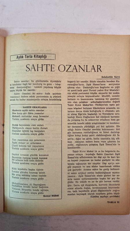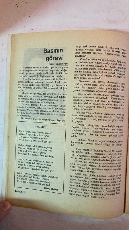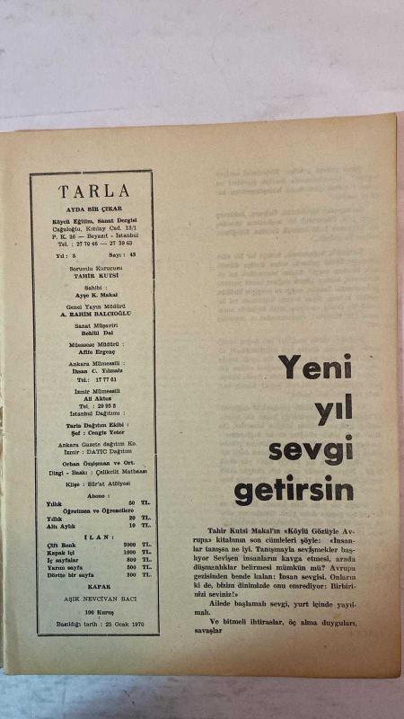 TARLA, KÖYCÜ EĞİTİM SANAT DERGİSİ - 25 OCAK 1970 SAYI: 48 - A. RAHİM BALCIOĞLU - NACİ GİRGİNSOY - SELAHADDİN SAVCI - TAHİR KUTSİ MAKAL - M. NECATİ ÖZSU - TARIK ORHAN - SELEHADDİN KOÇAK - SABAHAT EMİR - DURMUŞ DEDE - ALADDİN SOYKAN - MEHMET BAKIR - ŞAKİR PALANCIOĞLU - ŞAHAP METEER - ŞEREF TAŞLIOVA - AFİFE ERGENÇ - AŞIK SELMANİ - MEVLÜD İHSANİ - KEMAL BÜLBÜL - A. KADİR GÜLER - İSMAİL SADIK - AŞIK VAHAP KOCAMAN - HAYRETTİN BİLGİN - SÜLEYMAN CANER - BEHLÜL DAL - İHSAN C. YILMAZ - ALİ AKTOZ - CENGİZ YETER - ORHAN ÖZŞİŞMAN - TEPEDELENLİOĞLU - KAYGUSUZ ABDAL KÖYCÜLÜK EĞİTİM VE SANAT - TARLA - AŞIK NEVCİVAN BACI - YENİ YIL SEVGİ GETİRSİN - KÖYLÜ GÖZÜYLE AVRUPA - İNSAN SEVGİSİ - BACALI VE BACASIZ ENDÜSTRİNİN SINIRI - HALİÇ’İN ALTIN BOYNUZ YILLARI - İZMİT KÖRFEZİ - DENİZİN KİRLENMESİ - BALIKLARIN YOK OLUŞU - FABRİKA ATIKLARI - TURİZM CENNETİ TEHLİKEDE - İZMİT’TE DENİZE GİRME YASAĞI - GÖLCÜK - DERİNCE - YARIMCA - TUZLA - KARAMÜRSEL - SANAYİ BÖLGESİ VE ÇEVRE FELAKETİ - TAM TAKIM EKSİKSİZ 34 SAYFA, AYŞE K. MAKAL tarafından kaleme alınmıştır. Eser TAHİR KUTSAL editörlüğünde hazırlanmıştır. TARLA, KÖYCÜ EĞİTİM SANAT DERGİSİ - 25 OCAK 1970 SAYI: 48 - A. RAHİM BALCIOĞLU - NACİ GİRGİNSOY - SELAHADDİN SAVCI - TAHİR KUTSİ MAKAL - M. NECATİ ÖZSU - TARIK ORHAN - SELEHADDİN KOÇAK - SABAHAT EMİR - DURMUŞ DEDE - ALADDİN SOYKAN - MEHMET BAKIR - ŞAKİR PALANCIOĞLU - ŞAHAP METEER - ŞEREF TAŞLIOVA - AFİFE ERGENÇ - AŞIK SELMANİ - MEVLÜD İHSANİ - KEMAL BÜLBÜL - A. KADİR GÜLER - İSMAİL SADIK - AŞIK VAHAP KOCAMAN - HAYRETTİN BİLGİN - SÜLEYMAN CANER - BEHLÜL DAL - İHSAN C. YILMAZ - ALİ AKTOZ - CENGİZ YETER - ORHAN ÖZŞİŞMAN - TEPEDELENLİOĞLU - KAYGUSUZ ABDAL KÖYCÜLÜK EĞİTİM VE SANAT - TARLA - AŞIK NEVCİVAN BACI - YENİ YIL SEVGİ GETİRSİN - KÖYLÜ GÖZÜYLE AVRUPA - İNSAN SEVGİSİ - BACALI VE BACASIZ ENDÜSTRİNİN SINIRI - HALİÇ’İN ALTIN BOYNUZ YILLARI - İZMİT KÖRFEZİ - DENİZİN KİRLENMESİ - BALIKLARIN YOK OLUŞU - FABRİKA ATIKLARI - TURİZM CENNETİ TEHLİKEDE - İZMİT’TE DENİZE GİRME YASAĞI - GÖLCÜK - DERİNCE - YARIMCA - TUZLA - KARAMÜRSEL - SANAYİ BÖLGESİ VE ÇEVRE FELAKETİ - TAM TAKIM EKSİKSİZ 34 SAYFA adlı eser Türkçe dilindedir.