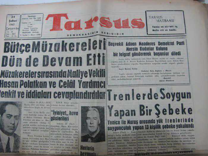 TARSUS gazetesi kemal tursunbay 24 şubat 1960 sayı 2267