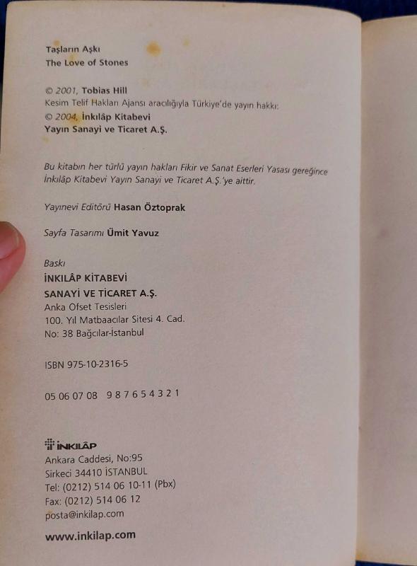 TAŞLARIN AŞKI TOBIAS HILL İNKİLAP KİTAPEVİ 1. BASKI / 2004 632 SAYFA NOT: EKSİK, YIRTIK, ÇİZİK, KOPUK SAYFA YOKTUR. 2. EL KİTAP