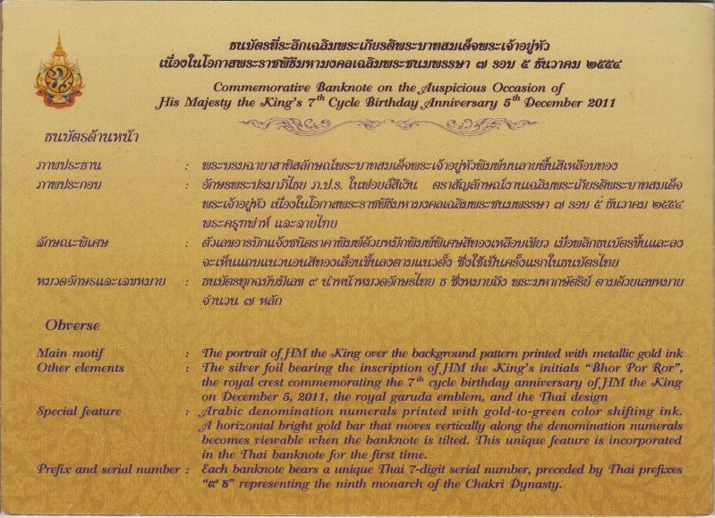 TAYLAND 100 BAHT 2011 HATIRA-KRAL 9. RAMA'NIN 84. DOĞUM GÜNÜ. ORİJİNAL FÖYÜNDE ÇİL., 7 gün önce satışa sunulmuştur.