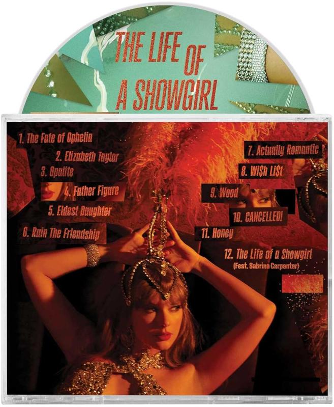 1 The Fate Of Ophelia 2 Elizabeth Taylor 3 Opalite 4 Father Figure 5 Eldest Daughter 6 Ruin The Friendship 7 Actually Romantic 8 Wi$h Li$t 9 Wood 10 Cancelled! 11 Honey 12 The Life Of A Showgirl 2025 CD POSTER İÇERİR AMBALAJINDADIR