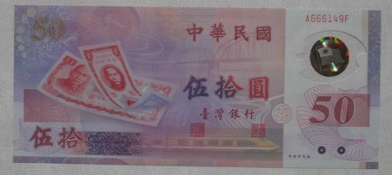 TAYVAN=1999 50 Yüan P-1990 ÇİL' Commemorative POLYMER, 6 ay önce satışa sunulmuştur.