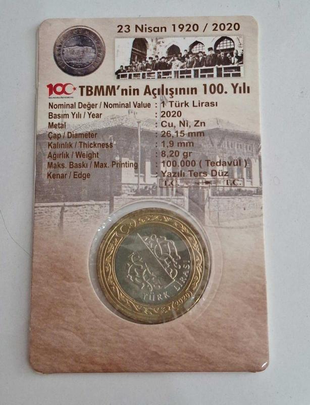 TBMM NİN AÇILIŞININ 100. YILI HATIRASI 2020 KAPAMASINDA 1 TÜRK LİRASI, bir ay önce satışa sunulmuştur.