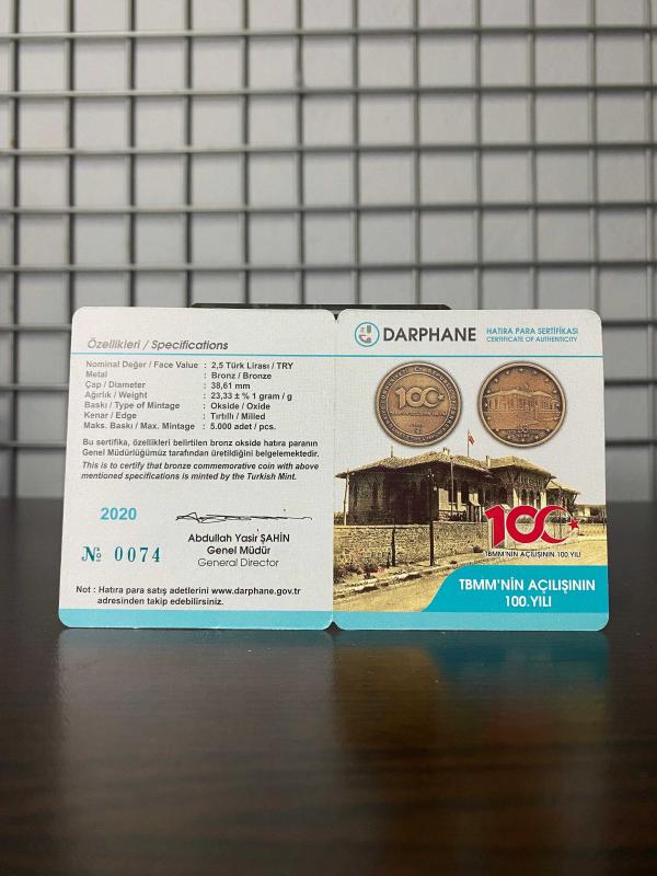 TBMM'nin Açılışının 100. Yılı Hatıra Para Sertifikalı 2020 (Bronz) 1