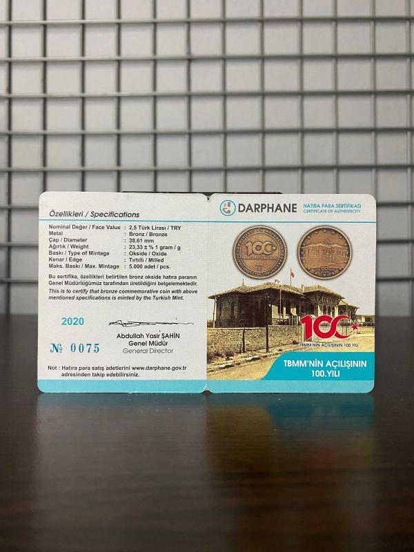 TBMM'nin Açılışının 100. Yılı Hatıra Para Sertifikalı 2020 (Bronz) 2