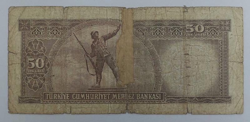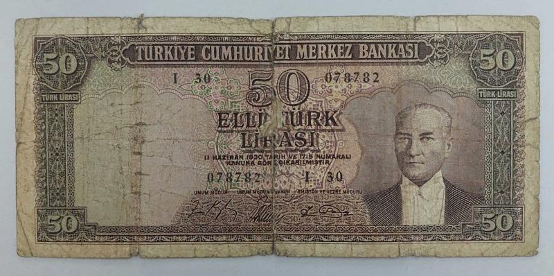 TC. 5. Emisyon 5. Tertip 50 TL, Seri I30 (Tamirli) Haliyle. başlıklı ürün, Efemera, Müzik, Sinema > Nümismatik, Para, Madalya > Kağıt Paralar > Cumhuriyet Dönemi > 5. Emisyon kategorisi altında İkinci El olarak satılmaktadır.