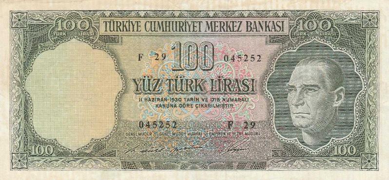 TC 5. Emisyon 6. Tertip 100 Lira F29 Serisi Çt+ Kondisyon: Çt+, 2 ay önce satışa sunulmuştur.