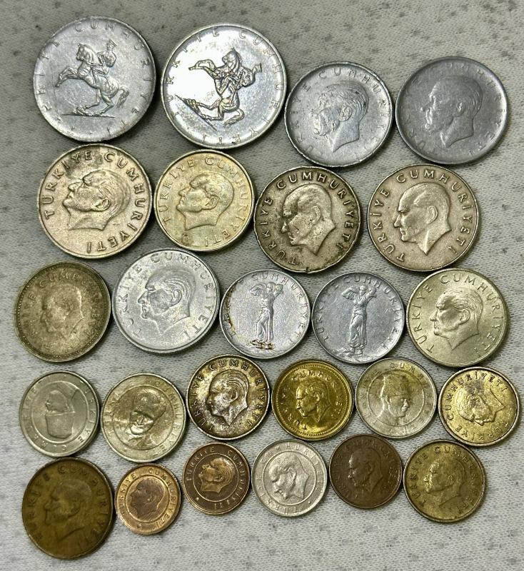 TC Cumhuriyet Dönemine ait 25 adet karışık madeni paralar ÇÇT/ÇT, en son 2 gün önce güncellenmiştir.