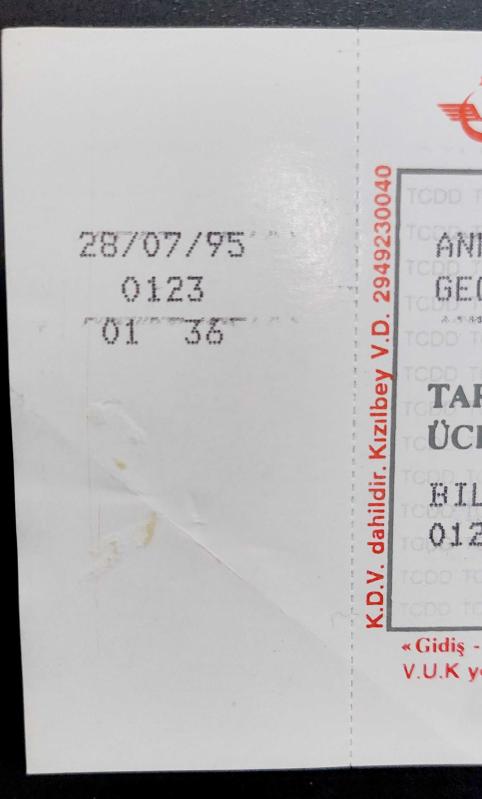 TCDD MAVİ TREN BİLETİ Sigaralı Vagon 28 Temmuz 1995 Ankara-Haydarpaşa, en son 2 ay önce güncellenmiştir.