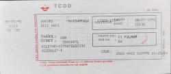 TCDD MAVİ TREN BİLETİ Sigaralı Vagon 28 Temmuz 1995 Ankara-Haydarpaşa