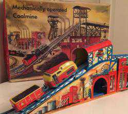 TECHNOFİX 294 ALMAN KÖMÜR MADENİ MEKANİK KURMALI TENEKE KUTUSUNDA OYUNCAK 1950 YILLAR