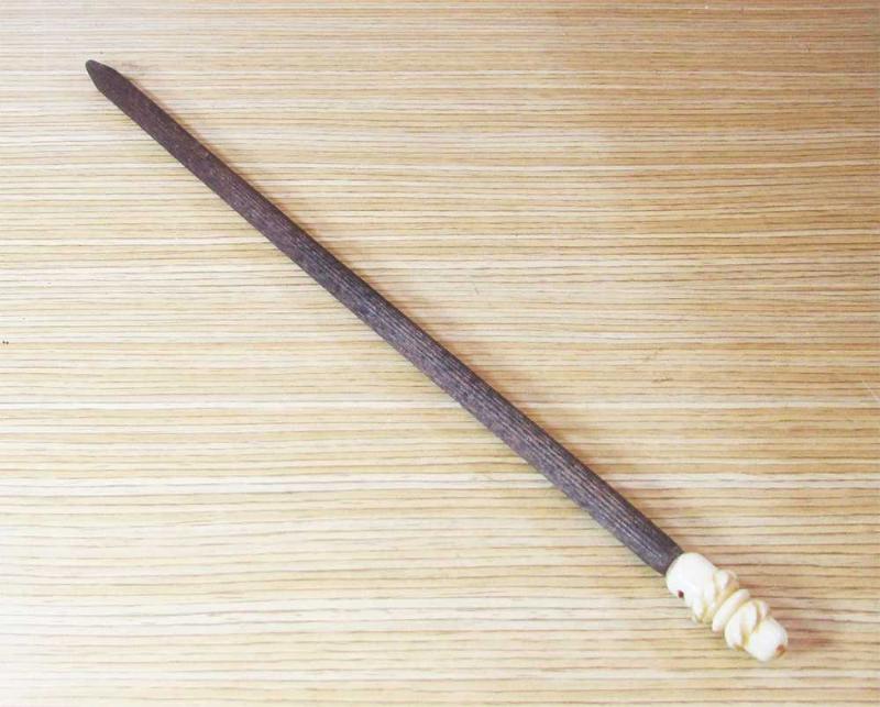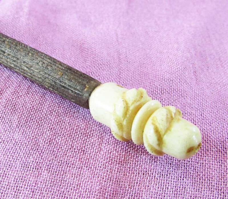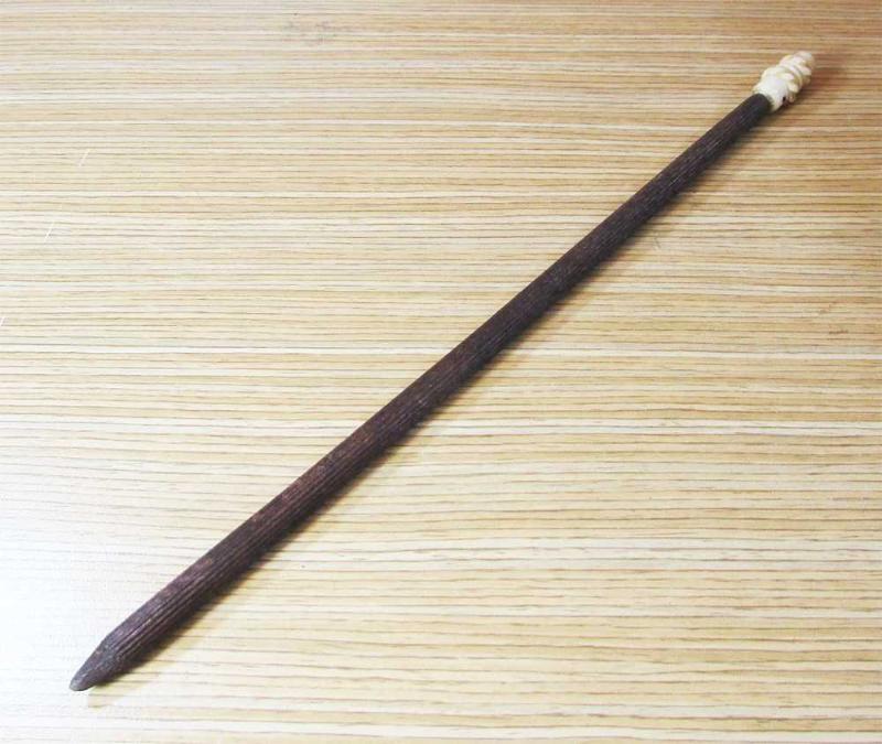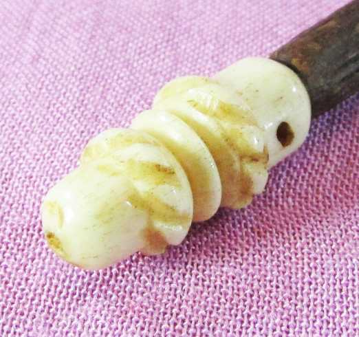 ÇUBUK KISMI AĞAÇTIR, ÜST SİKKE BAŞLIĞI KISIM KEMİKTİR, KEMİK KISIM ÇOK YAŞLI GÖRÜNÜMLÜ, TEPE KISMIN KALINLIĞI 13mm,YÜKSEKLİĞİ 27mm, KOMPLE UZUNLUK 26cm,