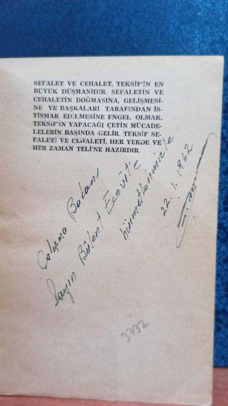 Kitap 1962 yılında Teksif tarafından [İSTANBUL] yayınlanmıştır. 223 sayfadır. TEKSİF 10. YIL KONGRESİ 4. GENEL KURUL TOPLANTISI) SENDİKA BAŞKANI TARAFINDAN ZAMANIN ÇALIŞMA BAKANI BÜLENT ECEVİT'E İMZALI adlı eser Türkçe dilindedir.