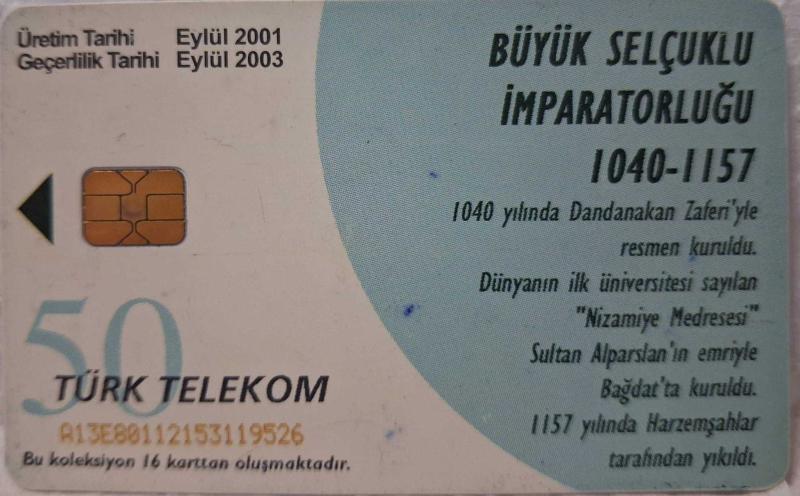 TELEFON KARTI BÜYÜK TÜRK DEVLETLERİ BÜYÜK SELÇUKLU İMPARATORLUĞU 1040-1157 EYLÜL 2001 KOLEKSİYONLUK TÜRK TELEKOM 50 KONTÜR İÇİNDE KONTÜR YOKTUR HALİYLE ADET FİYATIDIR başlıklı ürün, Antika-Koleksiyon, Hobi-Sanat > Koleksiyon Objeleri kategorisinde İkinci El olarak satışa sunulmuştur.