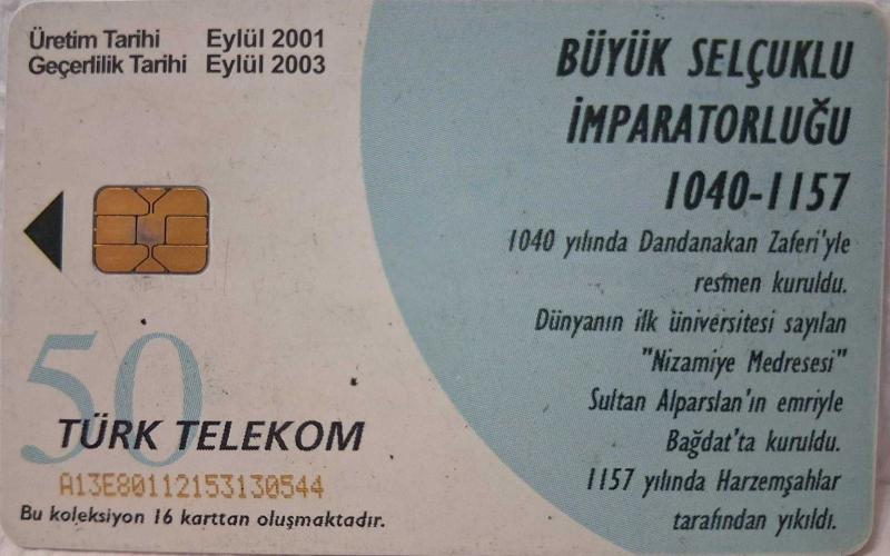 TELEFON KARTI BÜYÜK TÜRK DEVLETLERİ BÜYÜK SELÇUKLU İMPARATORLUĞU 1040-1157 EYLÜL 2001 KOLEKSİYONLUK TÜRK TELEKOM 50 KONTÜR İÇİNDE KONTÜR YOKTUR HALİYLE ADET FİYATIDIR, en son 3 ay önce güncellenmiştir.