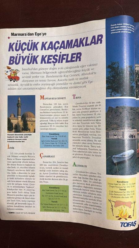 TEMPO GEZİ VE TATİL REHBERİ DERGİSİ - MİNE SÖĞÜT - ŞEBNEM KANDIR - YUSUF TUVI - ALİ ÖZ - MUSTAFA ÇETİNKAYA - YÜCEL TUNCA - KADİR AKTAY - HAMDİ KURT - KEMAL NURAYDIN - İRFAN UNUTMAZ - MÜCAHİT BÜBER - BİROL BAYRAM GEZİ VE TATİL REHBERİ - ASSOS (BEHRAMKALE) - AYVALIK - CUNDA ADASI (ALİBEY) - İZNİK - MANYAS KUŞ CENNETİ - ÇANAKKALE - TROYA - ALTINOLUK - CENNET-CEHENNEM MAĞARALARI - ÜRGÜP-GÖREME - İSKENDERUN- MANAVGAT - SIDE - ALANYA - ERDEMLİ (ADAMKAYA) - SAFRANBOLU - KURUCAŞİLE - SİNOP (İNCEBURUN) - GERZE - SAMSUN - SÜMELA MANASTIRI (TRABZON) - UZUNGÖL - ÇAMLIHEMŞİN - RİZE - ARTVİN (KAFKASÖR) DOĞU AKDENİZ: GÜNEŞ ÜLKESİNE YOLCULUK - KARADENİZ: HIRÇIN DENİZ YEŞİL DOĞA - 32 SAYFA adlı eser, Kitap > Süreli Yayınlar > Dergiler > Magazin, Moda kategorisinde İkinci El olarak satıştadır.