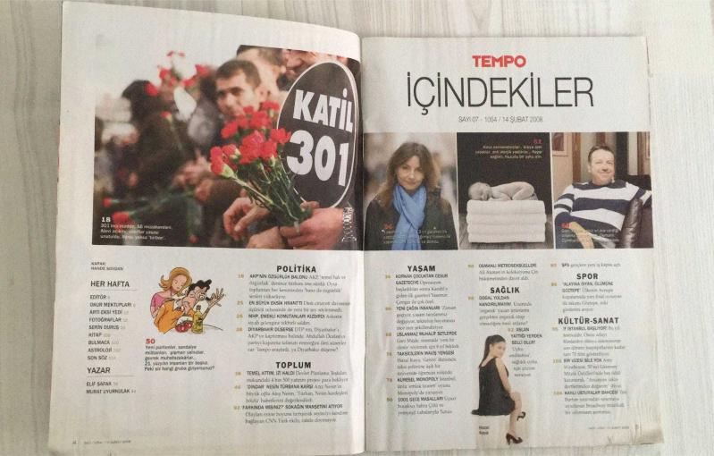 TEMPO – SAYI 1054 – 14 ŞUBAT 2008 – 114 SAYFA – AKP İKTİDARININ ÖZGÜRLÜK BALONU: TÜRBAN MERKEZLİ SINIRLI HAK ANLAYIŞI – DEVLETİN KANINI EMEN PROJELER: DPT STOKUNDAKİ 4500 YATIRIM BEKLİYOR – SAĞLIKLI UYKU İÇİN YATAK SIRLARI: HAVA NEMLENDİRİCİLER, KİŞİYE ÖZEL YATAKLAR – ORGANİK ÜRÜNLERDE ALDATMACA: GERÇEKTEN ORGANİK Mİ? – 301. MADDE, AB MÜZAKERELERİ, ALEVİ AÇILIMI UNUTULDU – DİYARBAKIR SENARYOLARI: DTP KAYBEDERSE NE OLUR? – DİNDAR NESİN TÜRBANA KARŞI: ATEŞ NESİN’DEN AÇIKLAMALAR – YASEMİN ÇONGAR’LA KANDİL RÖPORTAJI – ELİF ŞAFAK VE MURAT UYURKULAK’TAN YENİ ÇAĞIN İNSANLARI – GANI MÜJDE’DEN “USLANMAZ MUHALİF” SETLER – HAZAL KAYA’DAN “GENCO”DA MAVİŞ YENGE ROLÜ – KÜRESEL MONOPOLY: İSTANBUL EMLAK HARİTASINDA – CNN TÜRK EKİBİ ÖDÜLE DOYMUYOR – OSMANLI METROSEKSUELLERİ: ALİ AKMAN’IN KOLEKSİYONU ÇİN’E DAVETLİ – “ALAYINA İSYAN, ÖLÜMÜNE GÖZTEPE” – IF İSTANBUL BAŞLIYOR: 70 FİLM – AMY WINEHOUSE GRAMMY’DE 5 ÖDÜL – “KANLI USTURALAR BAHÇESİ”: TIM BURTON’DAN BROADWAY UYARLAMASI - RECEP TAYYİP ERDOĞAN – adlı eser, Kitap > Süreli Yayınlar > Dergiler > Siyaset kategorisinde İkinci El olarak satıştadır.