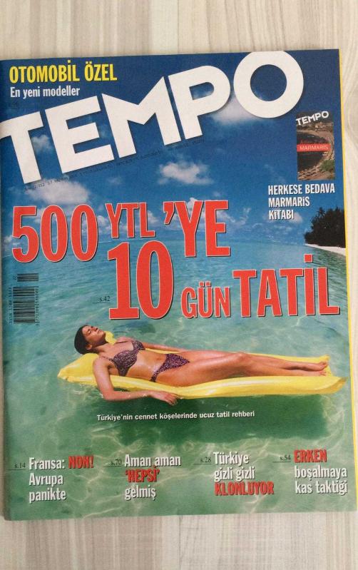 TEMPO – SAYI 912 – 1–7 HAZİRAN 2005 – 114 SAYFA – OTOMOBİL ÖZEL DOSYASI: 2005’İN EN YENİ MODELLERİ – BEDAVA MARMARİS KİTABI: TÜRKİYE’NİN CENNET KÖŞELERİNDE UCUZ TATİL REHBERİ – FRANSA’DAN “NON!”: AVRUPA ANAYASASI REDDEDİLDİ, AB PANİKTE – TÜRKİYE GİZLİ GİZLİ KLONLUYOR: KÖK HÜCRE ÇALIŞMALARI AÇIKLANMIYOR – ERKEN BOŞALMA İÇİN KAS EGZERSİZİ – ŞEMA TERAPİ: “ÇOCUĞA ‘ASLANSIN’ DEME, DAYANIKSIZ OLUR” – ŞAMPİYONLAR LİGİ FİNALİ: İSTANBUL DÜNYANIN GÖZDESİ – TAKSİLERİ DEĞİŞTİRMEK İÇİN 600 MİLYON YTL GEREKİYOR – ZEYTİNBURNU: ŞİFANIN YENİ MERKEZİ – 100–500 YTL ARASI 57 UCUZ TATİL ALTERNATİFİ – BERRAK TÜZÜNATAÇ’IN TESADÜFLE GELEN ŞÖHRETİ – ALP KIRŞAN: BİZİM JIM CARREY – İLLÜZYONİST LEYDİ: ILKAY ÖZDEMİR – HEPSİ GRUBU: TÜRK R&B KIZLARI – ŞİRİN PANCAROĞLU’NDAN BAROK ARP – NEW YORKER KURUÇEŞME’DE BREZİLYA TATLARI – “VAY KAYNANAM VAY” FİLMİ – VERTU’NUN PEMBE MODELİ – SÜPER LİG PS2’YE TAŞINDI: WINNING ELEVEN 8 – BENZİNİ KOKLAYAN ARAÇLAR – HER HAFTA: KEREM ÇALIŞKAN, MUHİTTİN SİRER, TUNA KİREMİTÇİ, ZEYNEP G, Sedat Simavi tarafından kaleme alınmıştır. Kitap İdeal tarafından yayınlanmıştır. 114 sayfadır. TEMPO – SAYI 912 – 1–7 HAZİRAN 2005 – 114 SAYFA – OTOMOBİL ÖZEL DOSYASI: 2005’İN EN YENİ MODELLERİ – BEDAVA MARMARİS KİTABI: TÜRKİYE’NİN CENNET KÖŞELERİNDE UCUZ TATİL REHBERİ – FRANSA’DAN “NON!”: AVRUPA ANAYASASI REDDEDİLDİ, AB PANİKTE – TÜRKİYE GİZLİ GİZLİ KLONLUYOR: KÖK HÜCRE ÇALIŞMALARI AÇIKLANMIYOR – ERKEN BOŞALMA İÇİN KAS EGZERSİZİ – ŞEMA TERAPİ: “ÇOCUĞA ‘ASLANSIN’ DEME, DAYANIKSIZ OLUR” – ŞAMPİYONLAR LİGİ FİNALİ: İSTANBUL DÜNYANIN GÖZDESİ – TAKSİLERİ DEĞİŞTİRMEK İÇİN 600 MİLYON YTL GEREKİYOR – ZEYTİNBURNU: ŞİFANIN YENİ MERKEZİ – 100–500 YTL ARASI 57 UCUZ TATİL ALTERNATİFİ – BERRAK TÜZÜNATAÇ’IN TESADÜFLE GELEN ŞÖHRETİ – ALP KIRŞAN: BİZİM JIM CARREY – İLLÜZYONİST LEYDİ: ILKAY ÖZDEMİR – HEPSİ GRUBU: TÜRK R&B KIZLARI – ŞİRİN PANCAROĞLU’NDAN BAROK ARP – NEW YORKER KURUÇEŞME’DE BREZİLYA TATLARI – “VAY KAYNANAM VAY” FİLMİ – VERTU’NUN PEMBE MODELİ – SÜPER LİG PS2’YE TAŞINDI: WINNING ELEVEN 8 – BENZİNİ KOKLAYAN ARAÇLAR – HER HAFTA: KEREM ÇALIŞKAN, MUHİTTİN SİRER, TUNA KİREMİTÇİ, ZEYNEP G adlı eser Türkçe dilindedir.