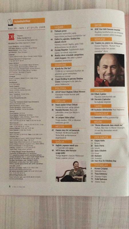 TEMPO – SAYI 929 – 27 EYLÜL 2005 – 114 SAYFA – “TÜRBANLI PORNO” DOSYASI: İNTERNETTE TEŞHİRCİLİK YAPAN TESETTÜRLÜLER – BAŞBAKAN’IN MUSEVİ SINIF ARKADAŞI, OFER KARDEŞLERİ ANLATIYOR – MS’Lİ HASTA MÜZEYYEN TABAK KÖK HÜCRE TEDAVİSİYLE YÜRÜDÜ – HER GÜN 5 DAKİKA, 12 HAREKETLE GENÇ KALIN – REALITY SHOW YARIŞMACILARI: “BİR DAHA ASLA” – DİDİM’İN YAĞIZLARI KRALİÇE’NİN DAMADI OLUYOR – ZEYNEP BEŞERLER: “İLİŞKİLERİMLE DEĞİL İŞİMLE VARIM” – TÜPRAŞ VE GALATAPORT İHALELERİ: OFER KARDEŞLERİN GİZLİ ÖYKÜSÜ – İBRAHİM ÇEÇEN: “GALATAPORT’TA BİR DAHA BU PARAYI BULAMAZLAR” – ERKAN MUMCU: “İHALE İPTAL EDİLMELİ” – ERHAN GÖKSEL: “TÜRKLER KÜRTLERE SAHİP ÇIKMALI” – MUSTAFA BAYRAM: “MECLİS’E GİRECEĞİM” – AT YARIŞINA İDDAA ÇİFTESİ – MEHMET ALİ BİRAND: “GAMZE OLAYI BİR YOL KAZASIYDI” – 12 HAMLEDE ANTI-AGING – FERZAN ÖZPETEK: “YANDIM MI, PİŞTİM Mİ BİLMİYORUM” – “ÖFKELİ AŞIKLAR” VE “DAVETSİZ ÇAPKINLAR” FİLM DOSYASI – SOYKIRIM İDDİALARINDA NAZİ BAĞLANTISI – WEBLOG GAZETECİLİĞİ – TARKAN, BEE GEE VE MURAT UNCUGLU’NDAN 10 adlı eser, Kitap > Süreli Yayınlar > Dergiler > Siyaset kategorisinde İkinci El olarak satıştadır.