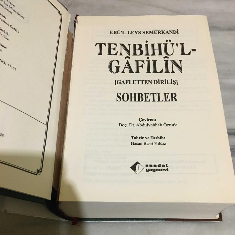 TENBİHÜ'L GAFİLİN VE BOSTANÜ'L ARİFİN ( 2 CİLT TEK KİTAP ) CİLTLİ - ŞÖMİZLİ, EBU'L-LEYS SEMERKANDİ tarafından kaleme alınmıştır. Kitap SAADET YAYINEVİ tarafından [İSTANBUL] yayınlanmıştır. Bu baskının çevirisi ABDÜLVEHHAP ÖZTÜRK tarafından yapılmıştır. 1.144 sayfadır. TENBİHÜ'L GAFİLİN VE BOSTANÜ'L ARİFİN ( 2 CİLT TEK KİTAP ) CİLTLİ - ŞÖMİZLİ adlı eser Türkçe dilindedir.