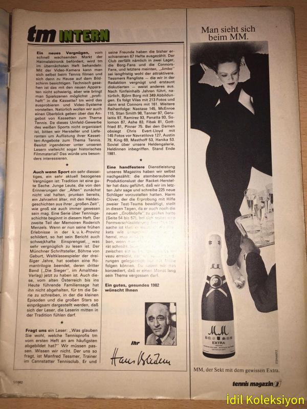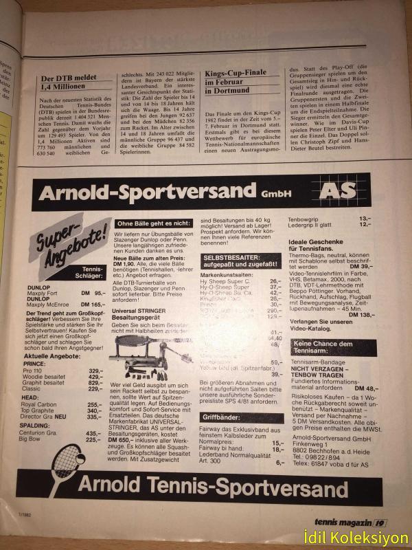 TENNİS MAGAZİN : Januar 1982 - Nr.1 - Almanca Dergi (Ein Matchball ist langst noch kein Sieg - Das Spitzentrio ist Weltklasse - Das Lange Warten auf den Break - Grobe mit kleine Schwachen - Besser spielen mit Stan Smith - Tennislektionen mit Arthur Ashe - Hawaii schon der Name ist Musik - Neu im Markt - Kalstart - Die Reichen und die Hungrigen - Ein Bengel im Alleingang - Club und Turnier - Ein Champion zum Anfassen - Schöne Tage in Teplitz - Mein Sohn wird Weltklasse - Der Aufsteiger - John McEnroe und Björn Borg) Hafif Yıpranmaları ve Lekelenmeler Mevcuttur