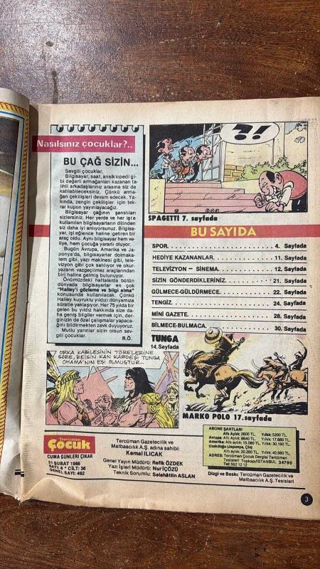 TERCÜMAN ÇOCUK DERGİSİ - 21 ŞUBAT 1986 SAYI : 8 KEMAL ILICAK - REFİK ÖZDEK - NUR İÇÖZÜ - SELAHATTİN ASLAN - R. Ö. - MUSTAFA DENİZHAN - TÜRKER - SAVAŞ GÖKTUĞ - MUSTAFA YAPICI - ALİ YUSUFOĞLU - RAMAZAN AYNA - TEMEL MERCAN - FUAT MERTER - ÖMER İSKENDER - CENGİZ AKALIN TULUK - VETHA TÜYSÜZ - AHMET AKÇIN - MUSTAFA BAYBEK - YÜKSEL CESUR - İBRAHİM DÜNDAR - KÜRŞAD TÜFEKÇİ - MURAT ŞEN - MARKO POLO - FERRUCIO - KUBİLAY HAN - EMİR HAMAŞ - KARA - TUNGA - OHAMA - SAM - ILSA - OLK - HZ. MUHAMMED - HZ. EBUBEKİR BU SAYIDA - TÜRKÇE SÖZLÜK - İMLA KILAVUZU - YILIN BÜYÜK ÇEKİLİŞİ YAPILDI - BU ÇAĞ SİZİN - SPAGETTİ - SPOR - HEDİYE KAZANANLAR - SİZİN GÖNDERDİKLERİNİZ - GÜLMECE GÜLDÜRMECE - TELEVİZYON SİNEMA - BİLMECE BULMACA - TUNGA - TENGİZ - MİNİ GAZETE - MARKO POLO - SEMA NASIL BİR DANSTIR - BALIK KAVAĞA ÇIKAR MI - POSTA KUTUSU - DÜNYANIN EN KALABALIK ÜLKESİ - TUNGA KAN VE KANUN - 34 SAYFA adlı eser, Kitap > Süreli Yayınlar > Dergiler > Magazin, Moda kategorisinde İkinci El olarak satıştadır.